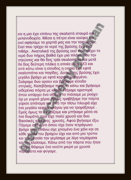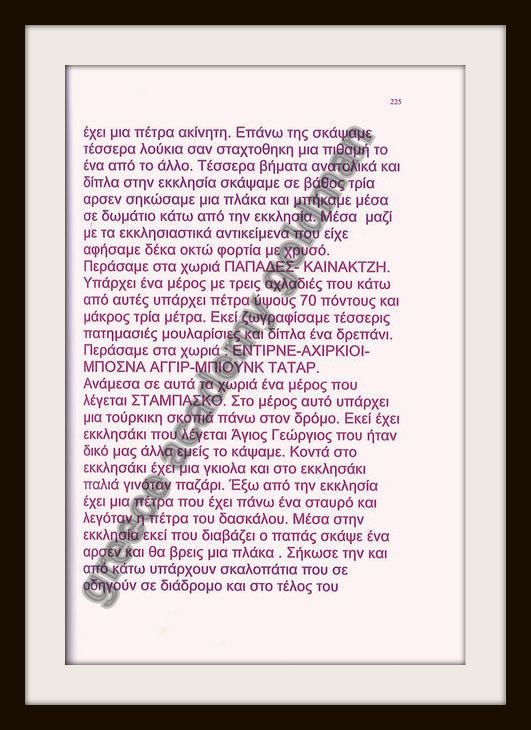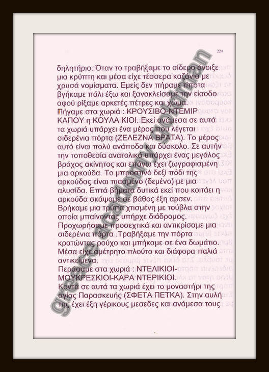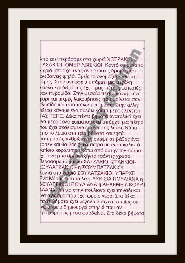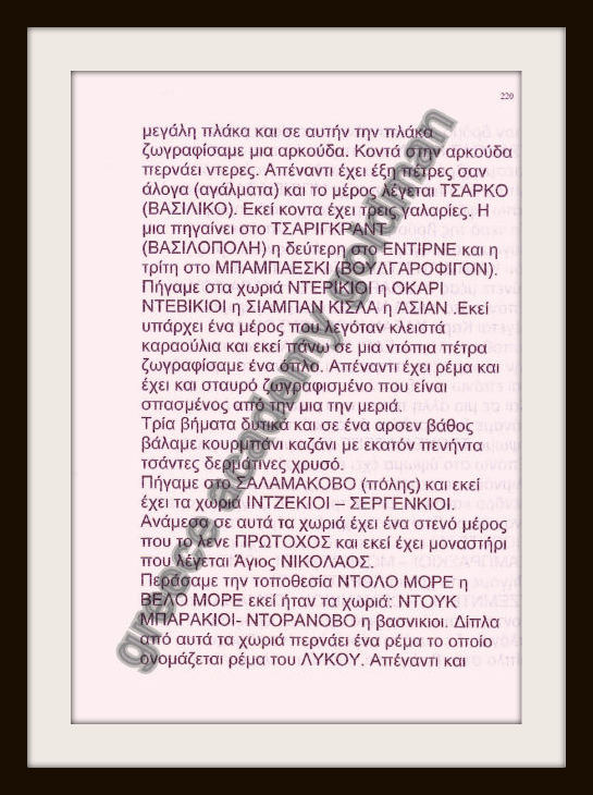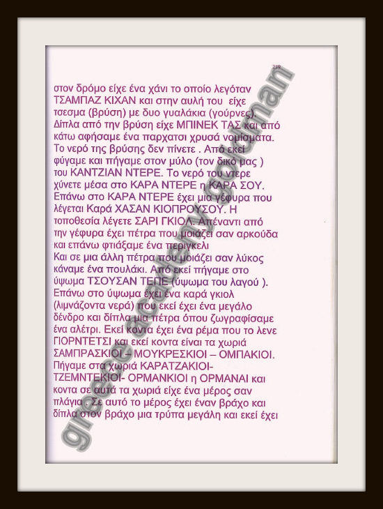@Βασιλης με μια γρήγορη ανάγνωση κάποιες μικρές παραλλαγές βρήκα ,βασικά κάποιες ομοιότητες με τα μέρη στα βουνά πάνω από την Δράμα υπάρχουν επίσης και κάποια σημάδια