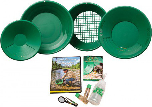 Η έρευνα για φυσικό χρυσό με τα πιάτα Garrett Deluxe Gold Pan Kit είναι διασκέδαση! Κάθε κυνηγός θησαυρού πρέπει να έχει ένα. Αγοράστε το πολυτελές σύστημα. Είναι η καλύτερη σας αγορά! Όλα τα πακέτα έρευνας φυσικού χρυσού της Garrett είναι ελαφρού βάρους, σε πράσινο χρώμα για βελτιωμένη ορατότητα στο χρυσό και σχεδόν άφθαρτο. Τα πατενταρισμένα πιάτα 90° της Garrett μπορούν να σας βοηθήσουν να βρείτε χρυσό πιο αποτελεσματικά.