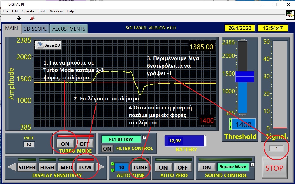 Αναβάθμιση λογισμικού έκδοση 6.0.0. συμβατή σε όλα τα hellenic-pulse μοντέλα. Σε αυτή την έκδοση προστέθηκαν ειδικοί αλγόριθμοι ευστάθειας και ανάδειξης στόχων σε TURBO MODE στη κάρτα 2D που αυξάνουν τη διακριτική ικανότητα σε μεγάλο βαθμό του μηχανήματος δίνοντας του 30% καλύτερη απόδοση και ανίχνευση βάθους.