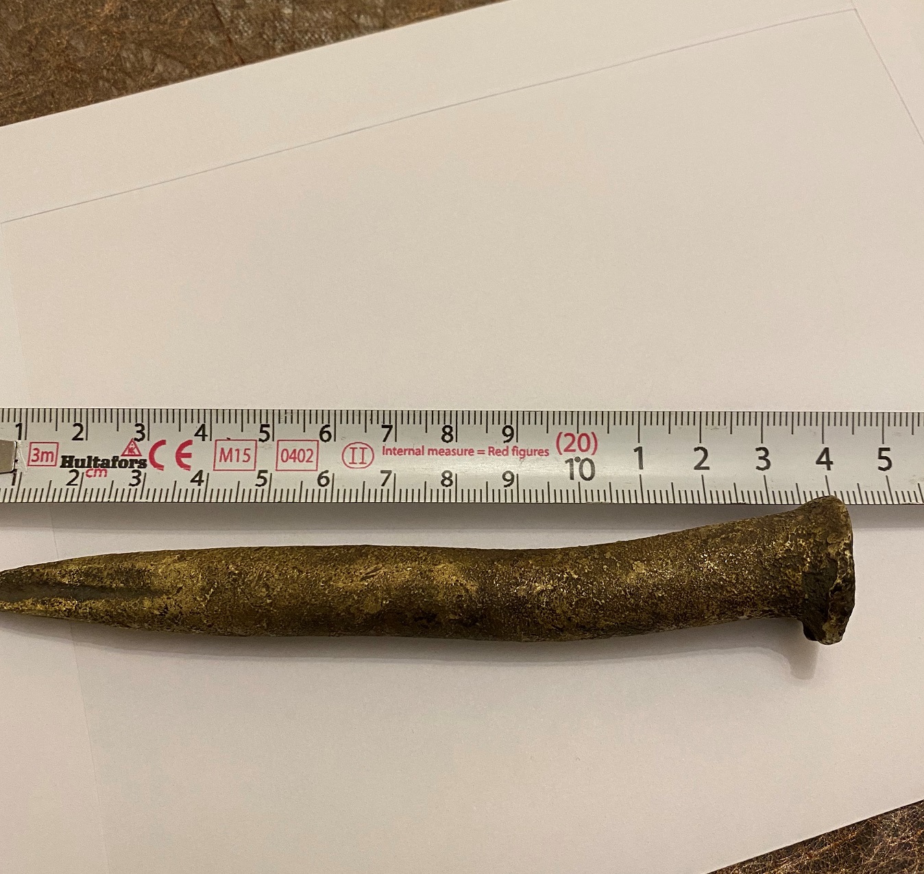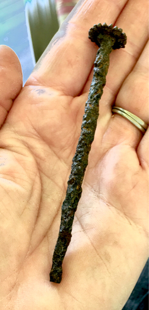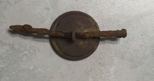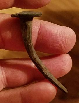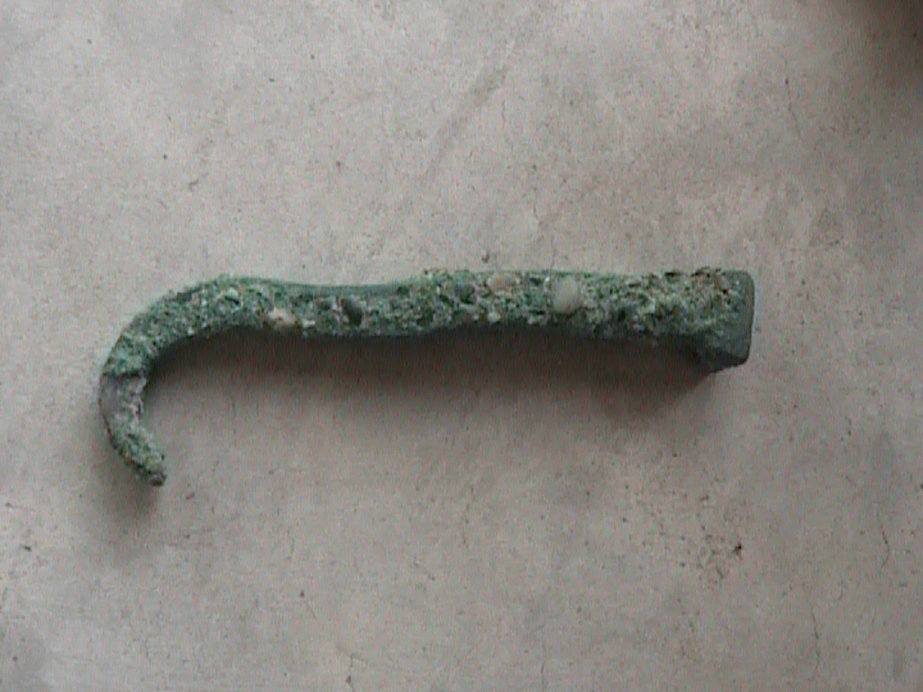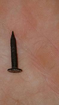 Το συγκεκριμένο καρφάκι βρέθηκε ανατολικά από το βράχο με το χαρτάκι στα 22 βήματα όπως το βλέπεις και όπως παρατήρησες στο κάτω άκρο του έχει δύο σπείρες από σύρμα.