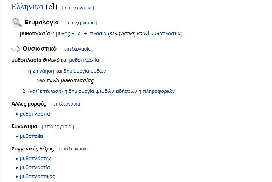 (κατ’ επέκταση) η δημιουργία ψευδών ειδήσεων ή πληροφοριών
