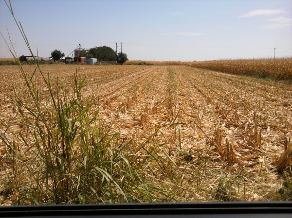 Αριστερά, δεξιά, όπου κοιτούσες, παντού χωράφια. Κυρίως καπνά. Νομίζω βιρτζίνια, όχι ότι έχει σημασία όμως. Από τα χωράφια αυτά απογειώνονταν οι μαχητές των αιθέρων κατά τις τελευταίες εβδομάδες του ελληνο-ιταλικού πολέμου και την απαρχή της γερμανικής εισβολής.